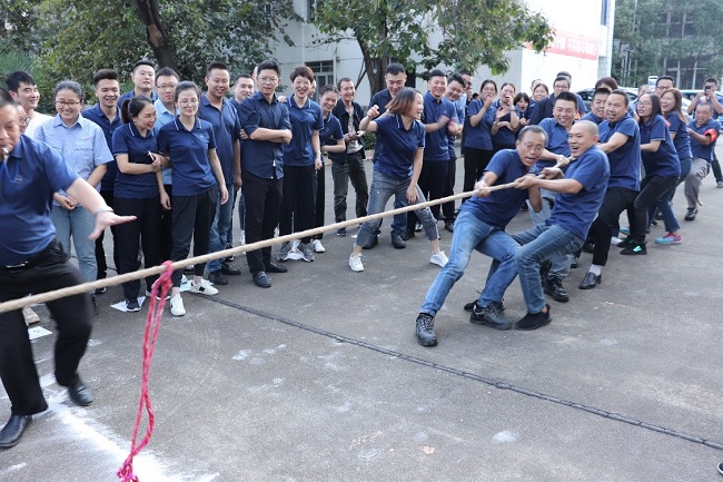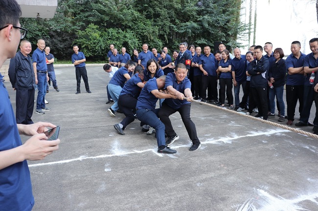在隊長的帶領下,各隊隊員高呼口號,士氣大振。當比賽的哨聲一響起,隊員們口中高呼“一二、一二”,雙手緊握長繩,拼命往后拉。未參賽的員工自發(fā)組成啦啦隊為比賽隊員加油,吶喊聲此起彼伏,激烈的比賽把活動推到了高潮。比賽過程中,各參賽隊員努力拼搏,尤其在勝負難分時,大家毫不退卻,咬緊牙關,堅持到底。